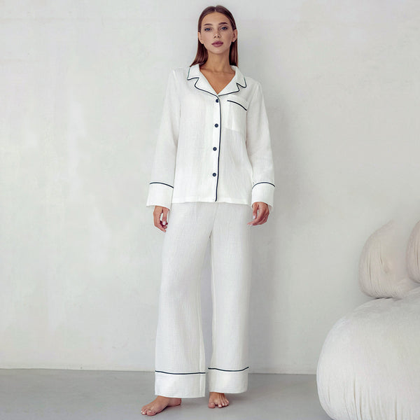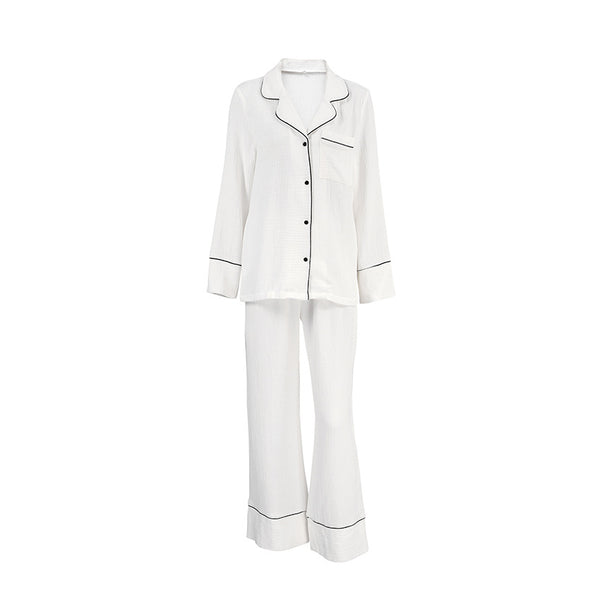 Simple And Comfortable Cardigan Pajamas Two-piece White Pocket Long Sleeve Ladies' Homewear