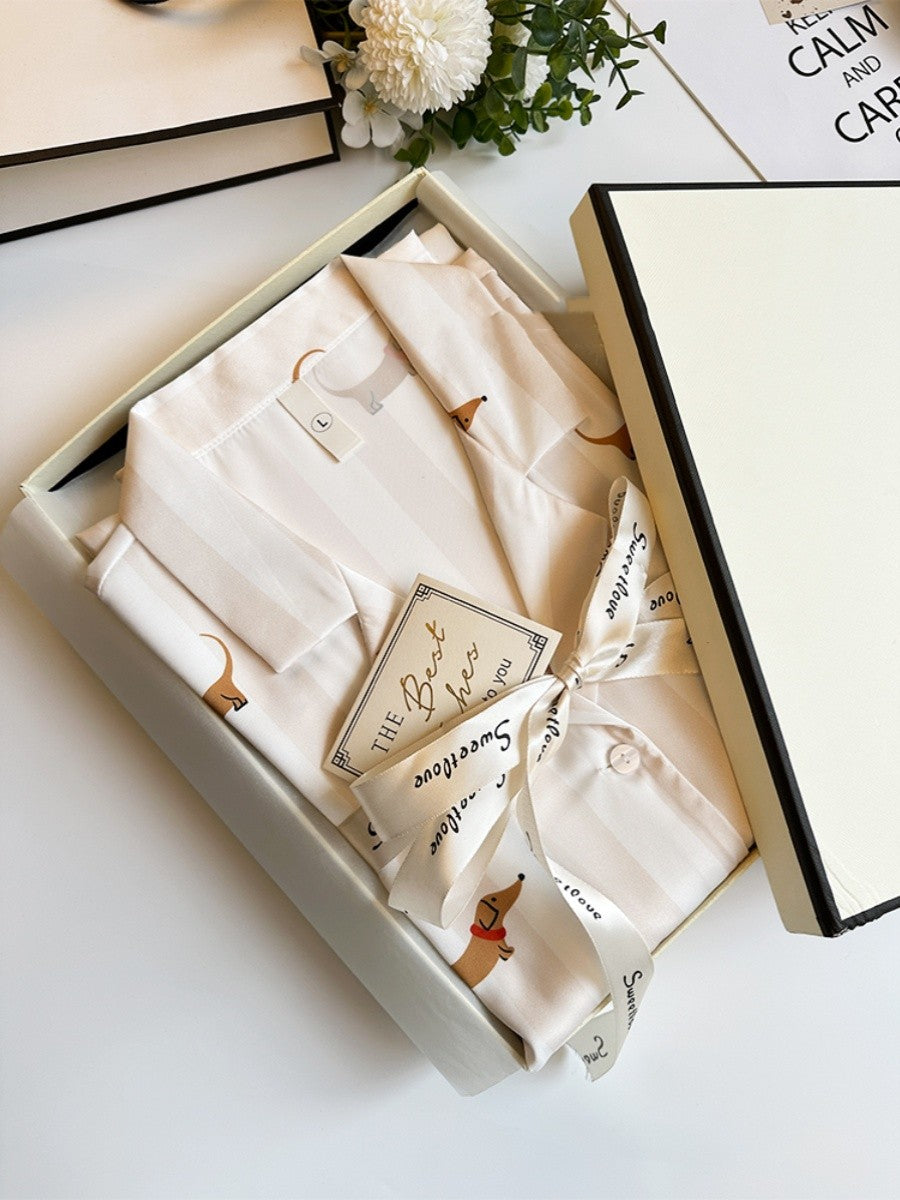 Striped Sausage Dog Pajamas For Women Simple Homewear